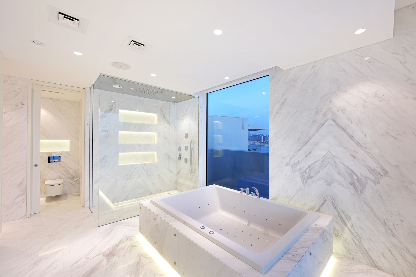 bar and a breathtaking swimming pool and outdoor pergola. Finished with marble cladded walls and